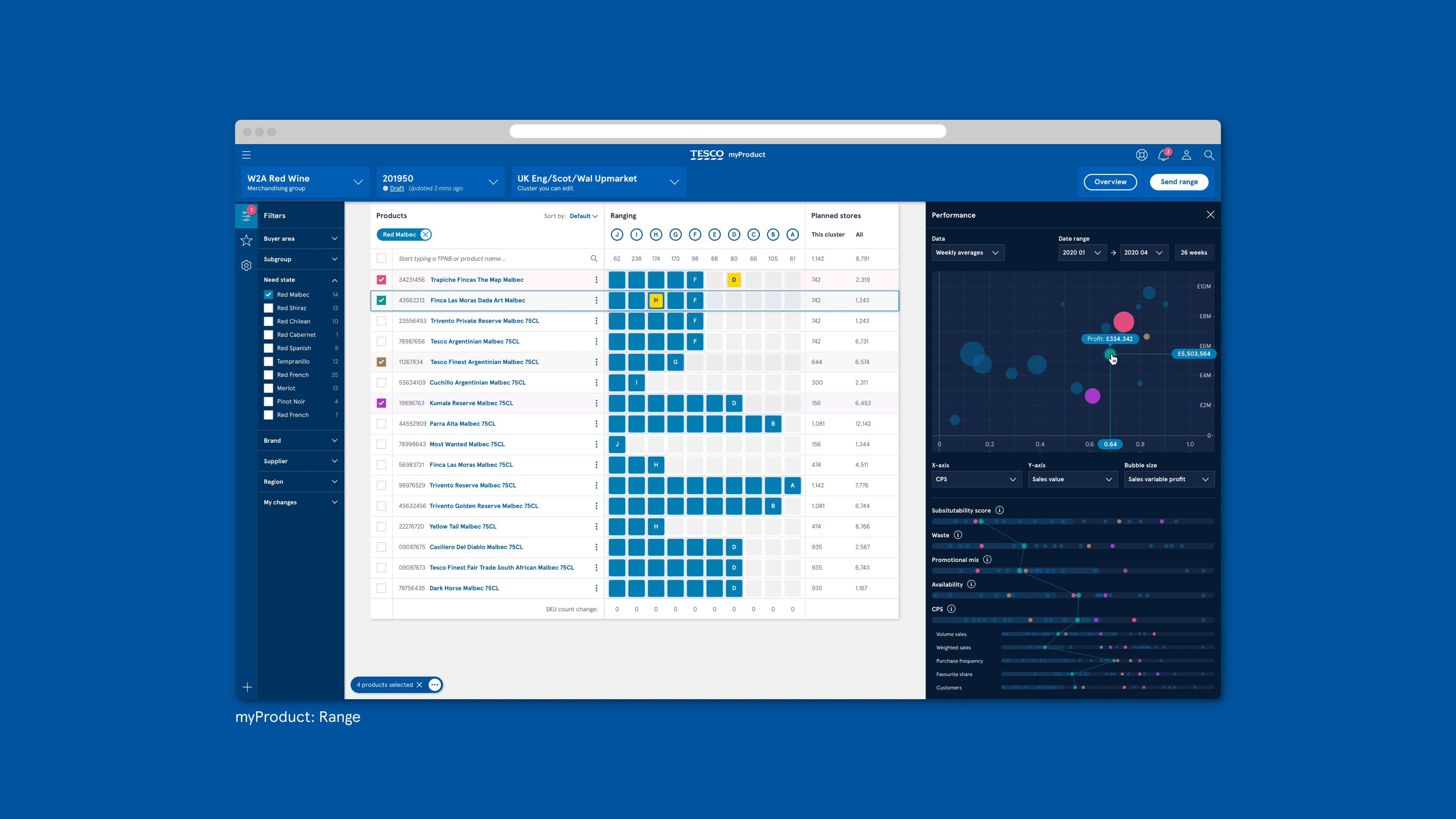 My core role involved overseeing a suite of 15 enterprise tools for colleagues and suppliers called myProduct. The tools cover the buying, selling, monitoring and development products across Tesco.