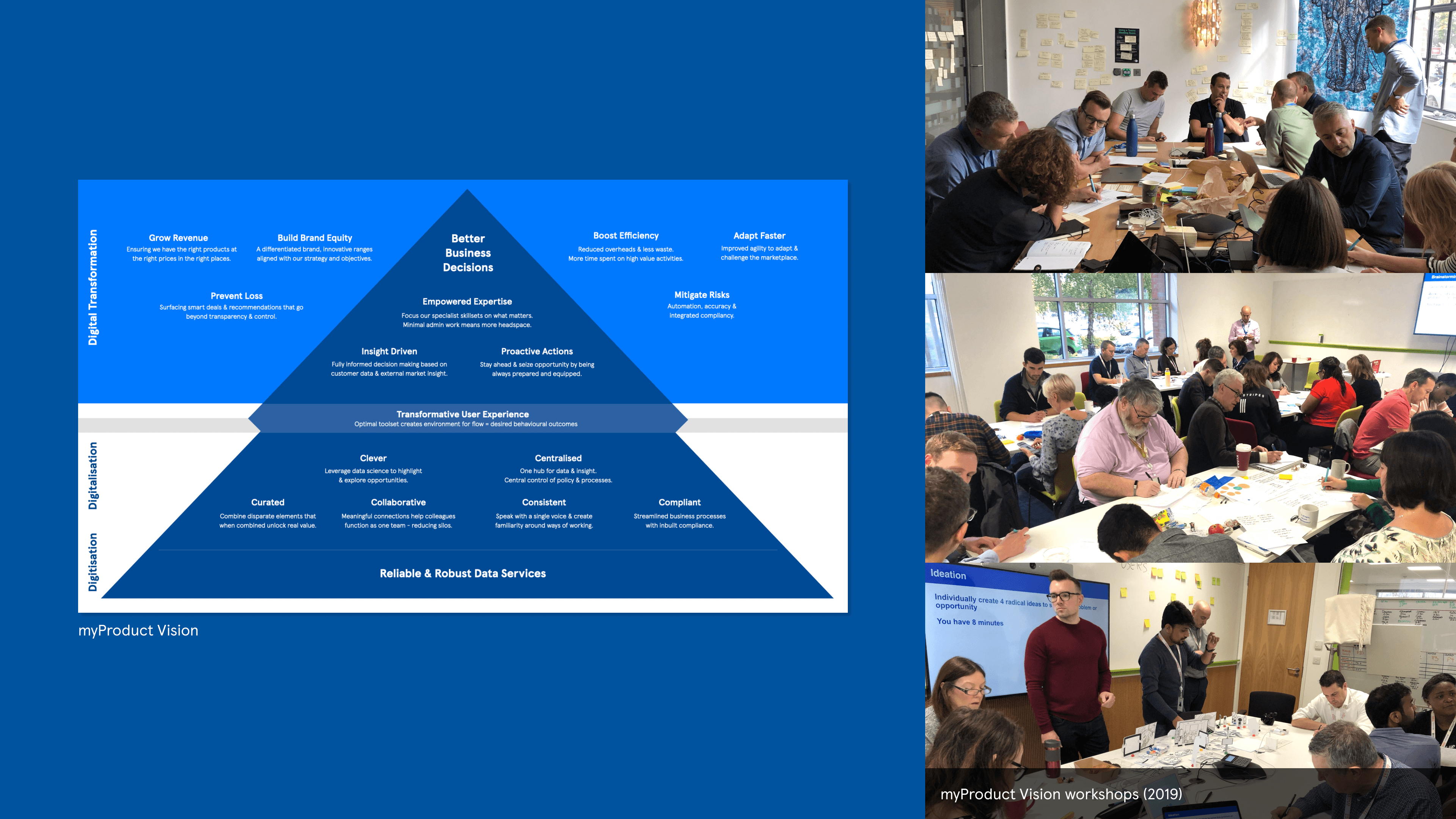 By 2019, I worked with the product leadership team to create a new vision suite of tools. Our goal was to bring data analysis and smart recommendations into the heart of myProduct, empowering colleagues to make better business decisions.