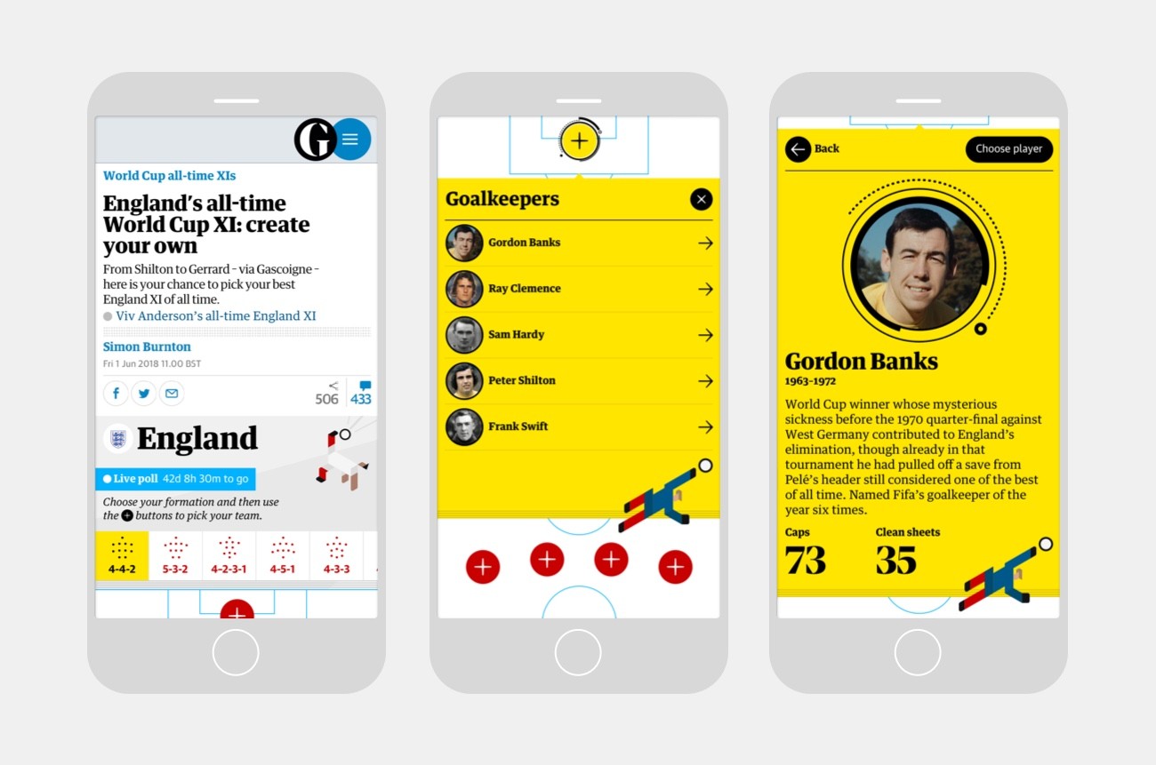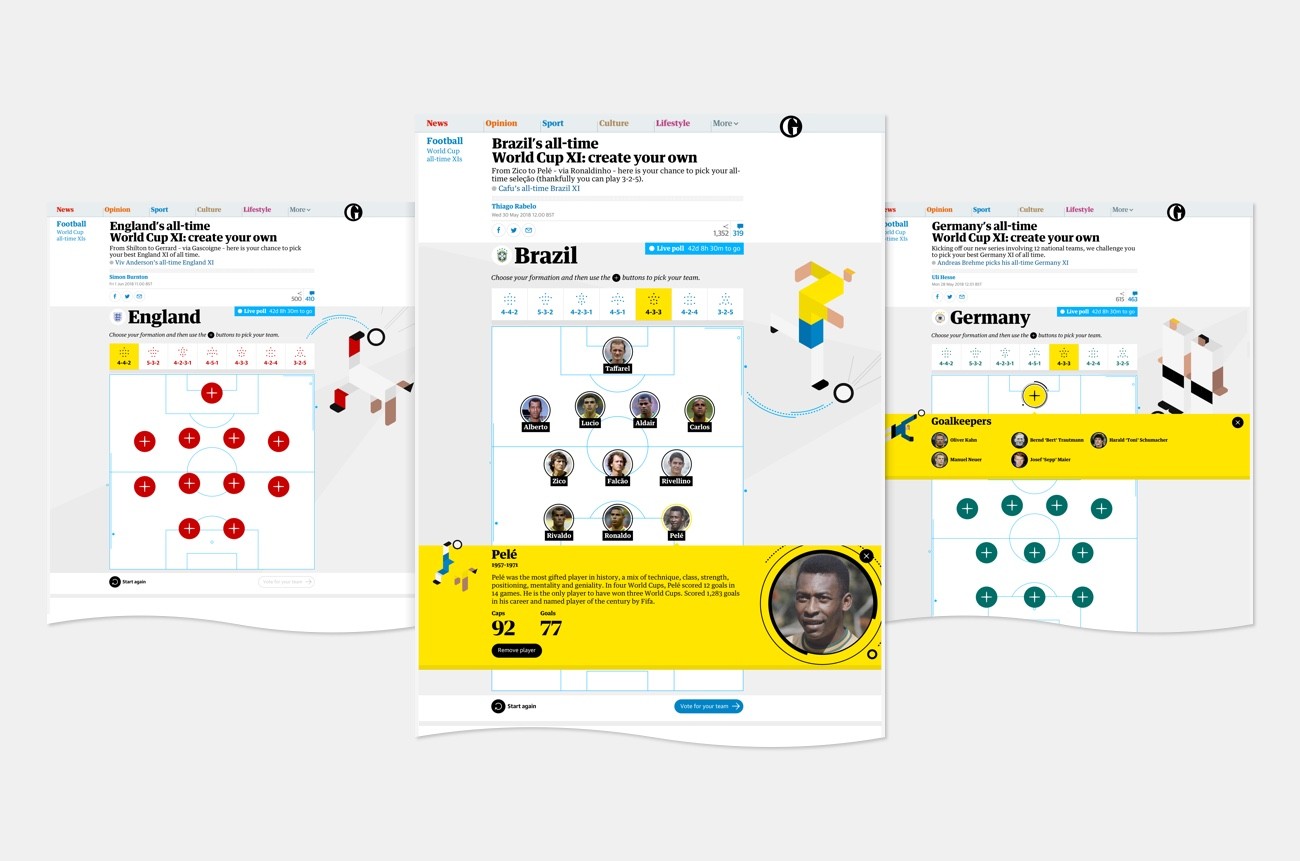 Working with the team at Ideas Made, I designed the UX and UI for a new interactive feature that kicked off The Guardian’s World Cup 2018 coverage.